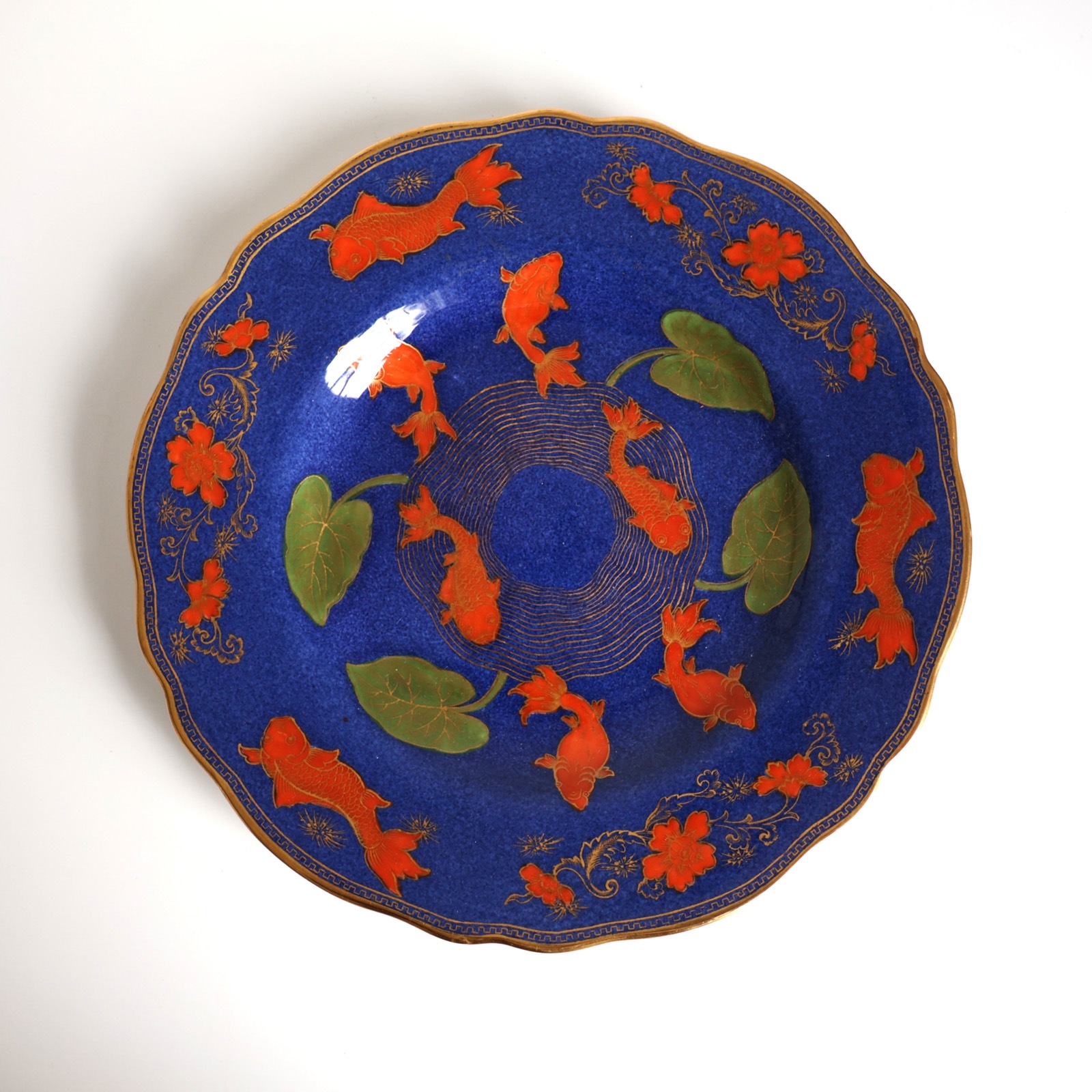 スポード 瑠璃赤絵錦鯉金魚文中皿
