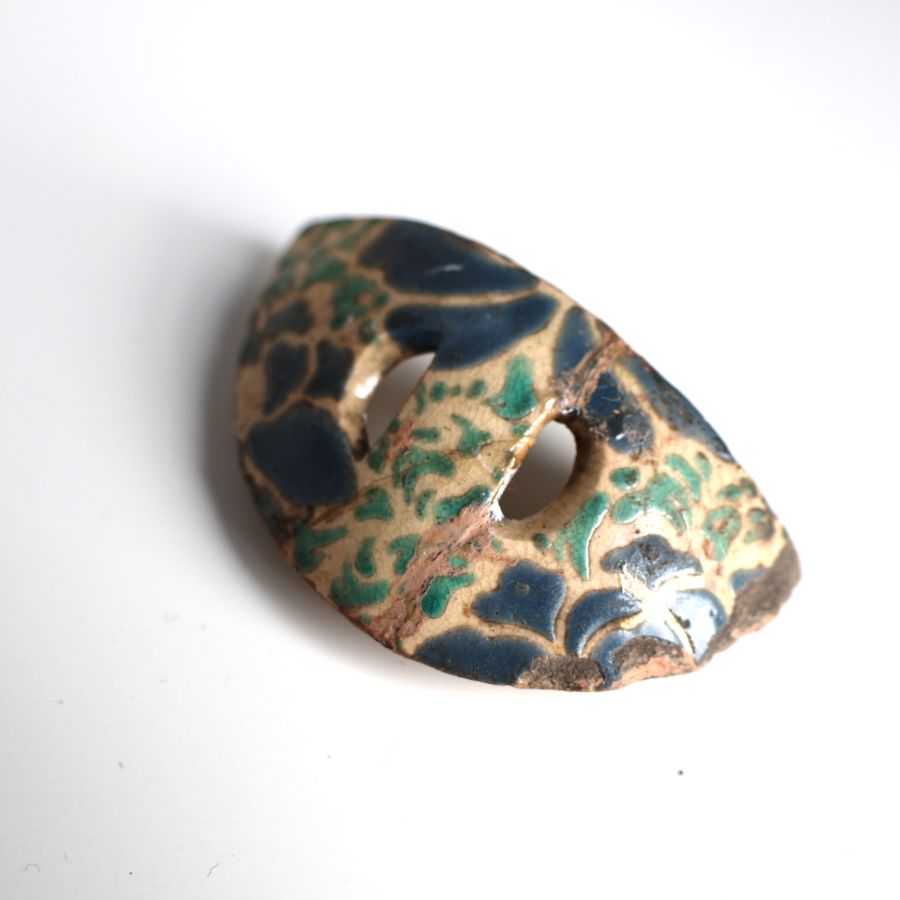この作品では古い作品に見られる透明がかった緑の抜蝋絵付け、18世紀中期に復活した赤絵や濁った青絵付、18世紀後半以降の古清水に多く見られる印が無いなどの特徴から恐らく1740-70年代頃の作品と思われます。