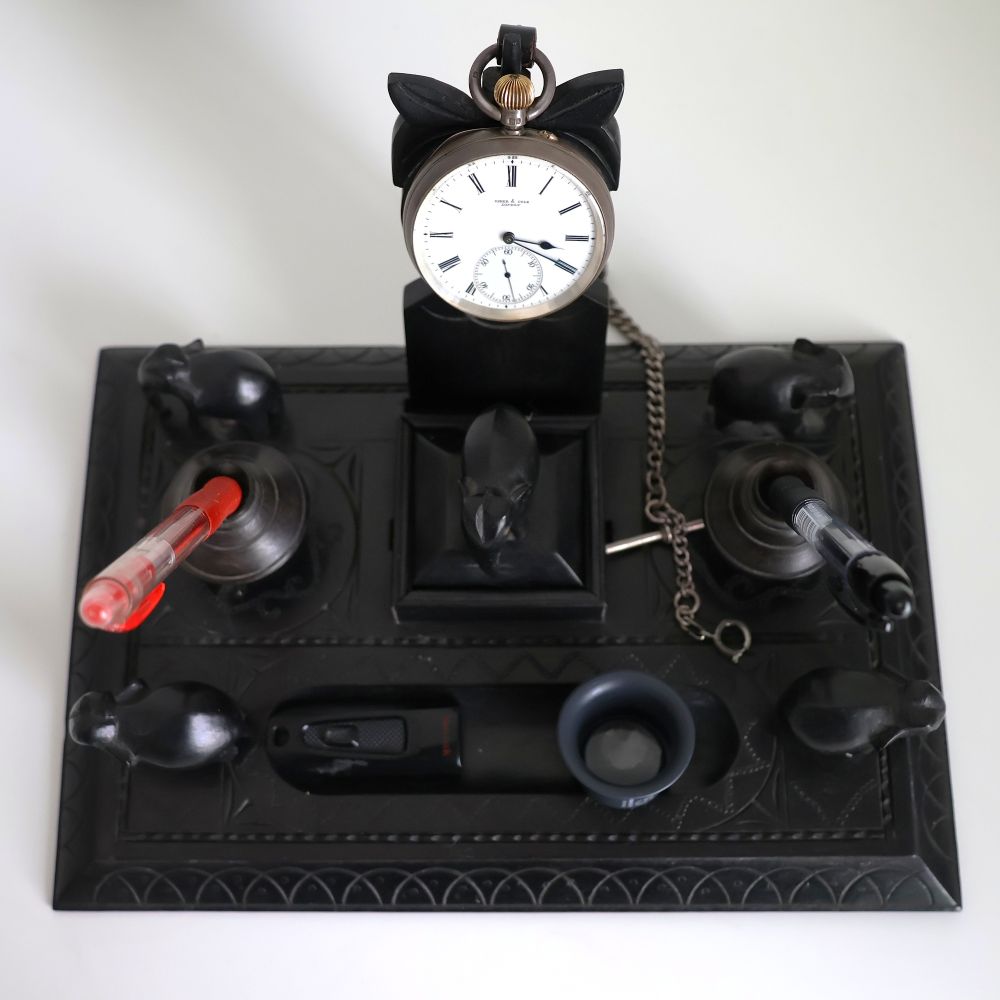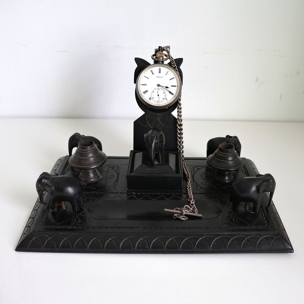帝国主義が産み出した重厚なヴィクトリア朝紳士のデスクセット。アンティーク懐中時計スタンドとしても使えます☆