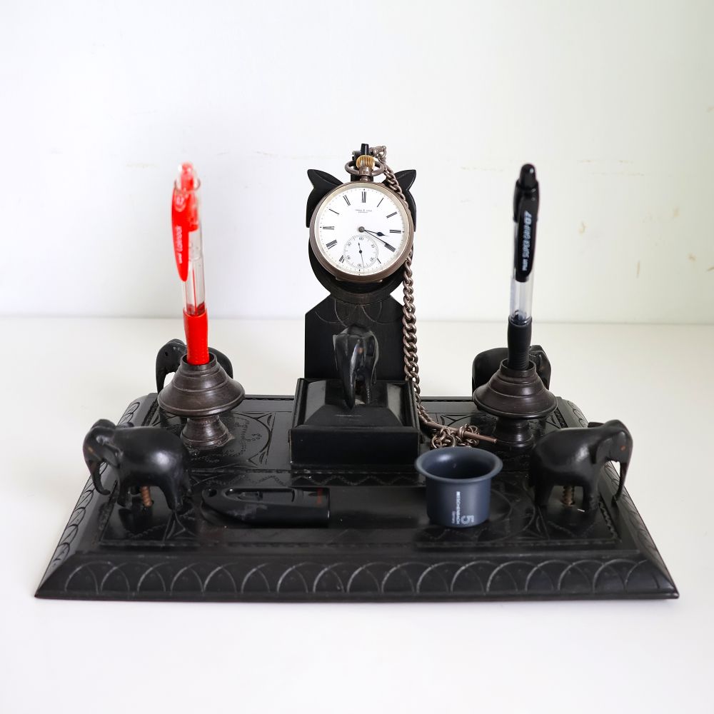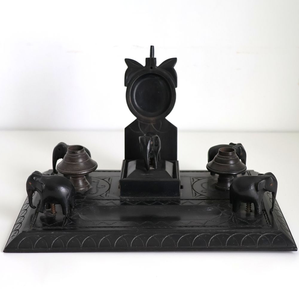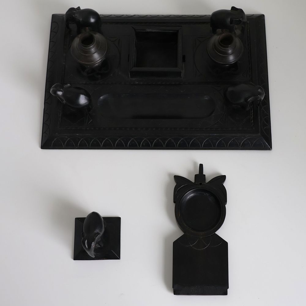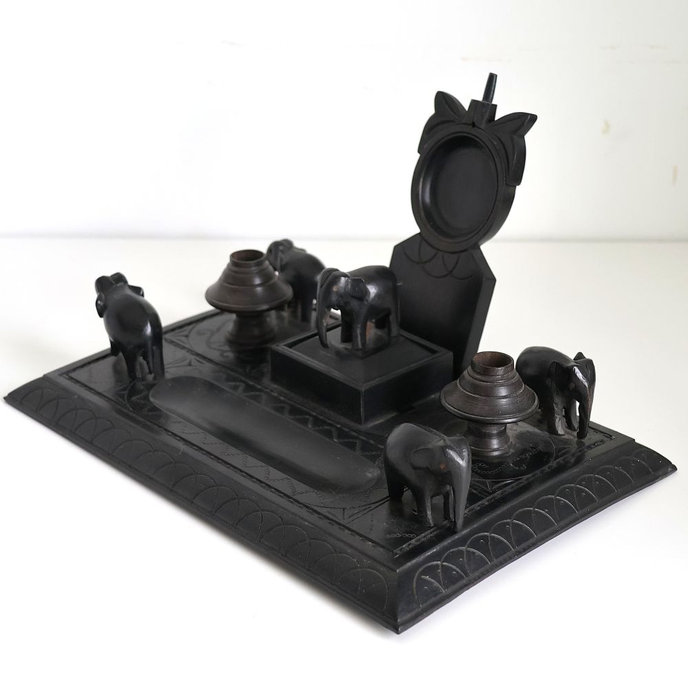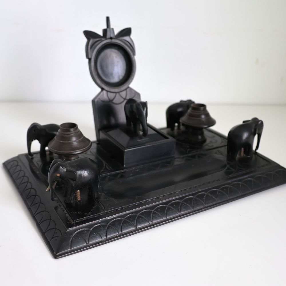 ヴィクトリアン アフリカ黒檀彫刻象デスクセット