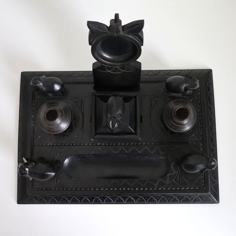 A Victorian African ebony desk set